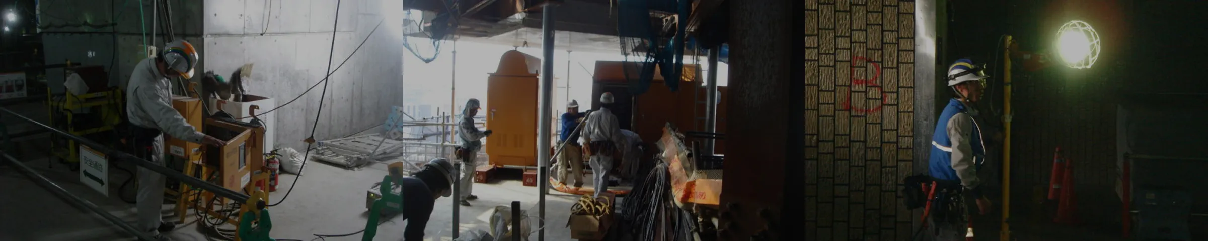 私たちが手掛ける現場は、多くの方が知る高層ビルや商業施設、先ごろ開催された大阪万博関連工事など、大規模案件が中心です。高度な技術と計画性で、大規模な現場全体への電気の供給に貢献しています。