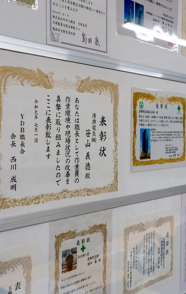 長年の実績により、竹中工務店をはじめとする大手ゼネコンからの信頼は厚く、安定した受注をいただいています。「清興電気に任せれば大丈夫」と言っていただける品質と対応力が、私たちの誇りです。