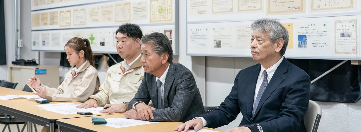 当社には、竹中工務店の優良職長認定制度「マイスター」に認定された社員が6名在籍しています(2025年11月現在)。これは、当社が長年社員教育と人間力の向上に力を注いできた成果であり、高い施工品質の証です。